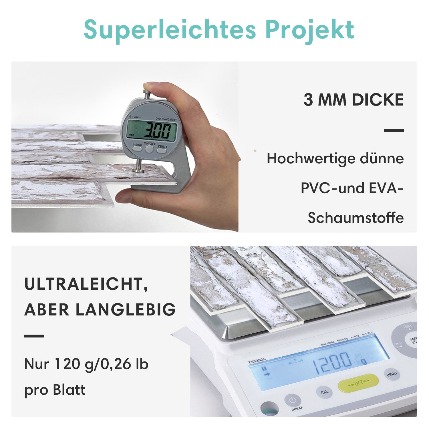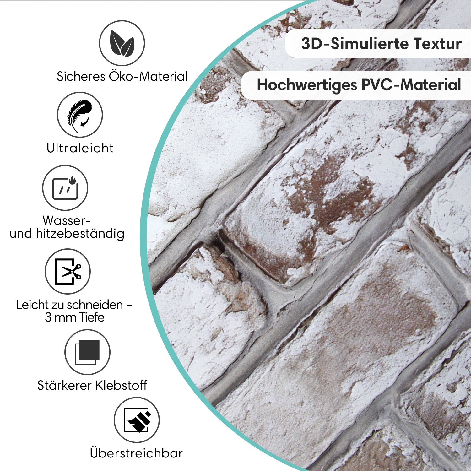 Realistischer 3D-Effekt: Die mehrschichtige, geprägte Struktur sorgt für eine verblüffend realistische Optik und Haptik, die echten Ziegelsteinen täuschend ähnlich sieht.