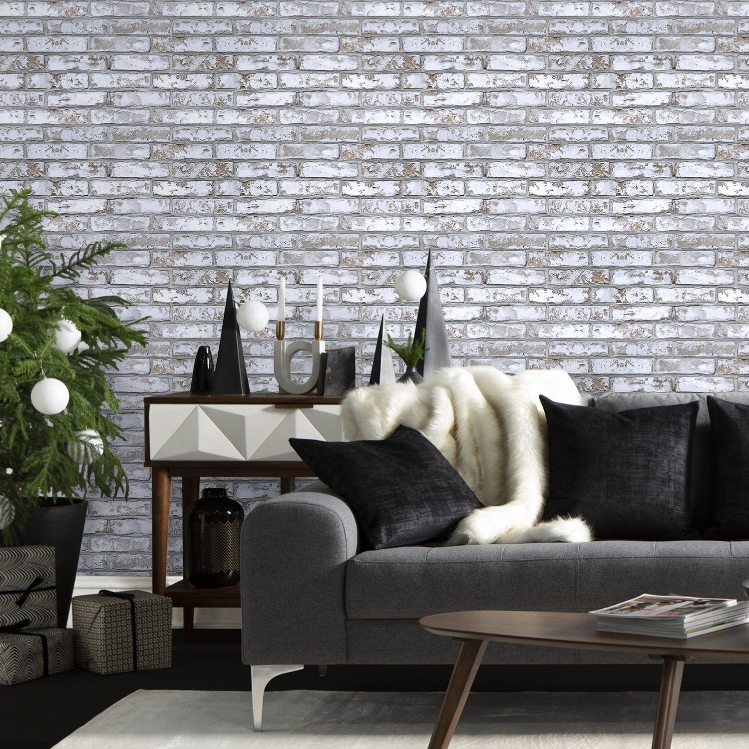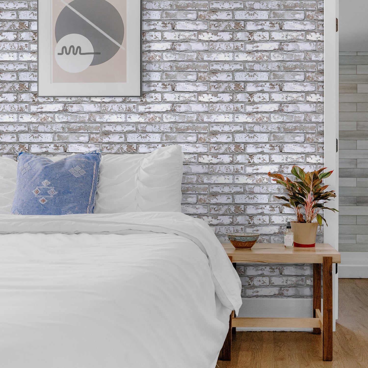 3D Wandpaneele Großformat – Rustikale Whitewash Ziegeloptik Selbstklebend