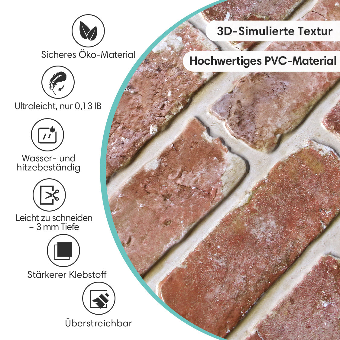 Realistischer 3D-Effekt: Die mehrschichtige, geprägte Struktur sorgt für eine verblüffend realistische Optik und Haptik, die echten Ziegelsteinen täuschend ähnlich sieht.