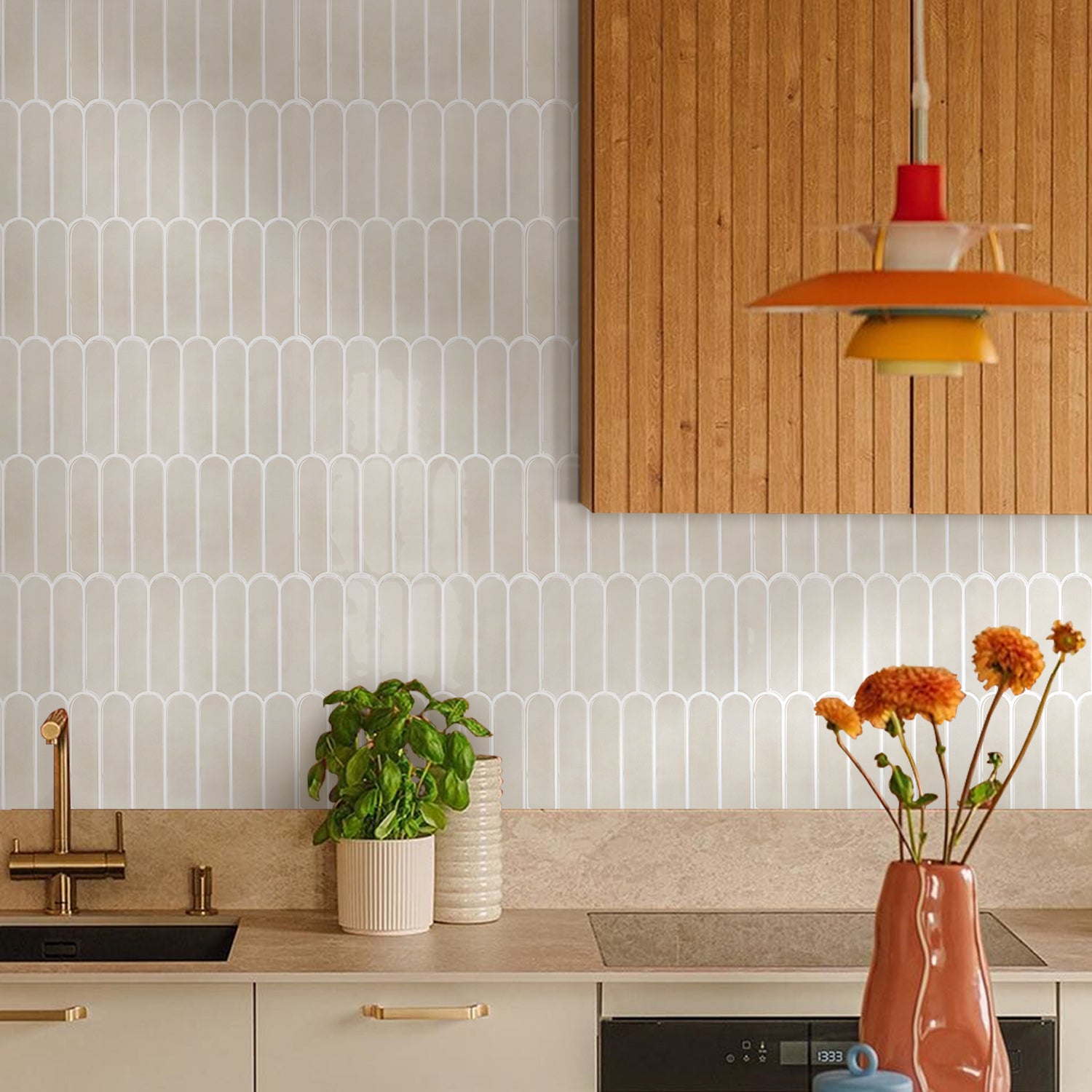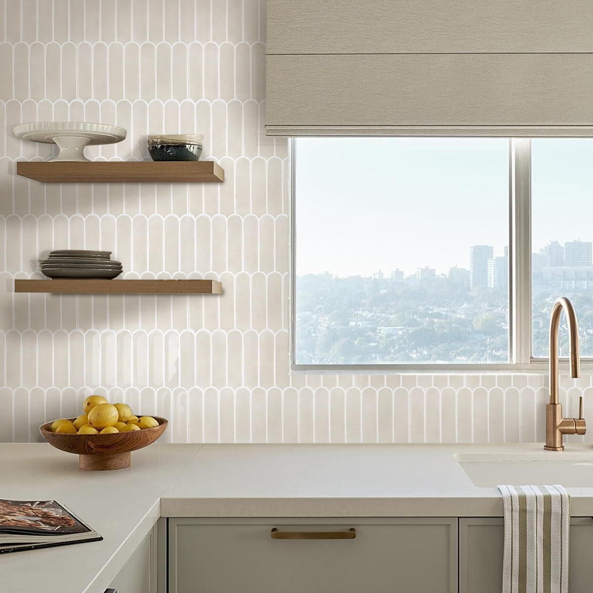 Selbstklebende Wandfliesen in Cream im Fischschuppen-Design – Dickere Ausführung für Küchenrückwände