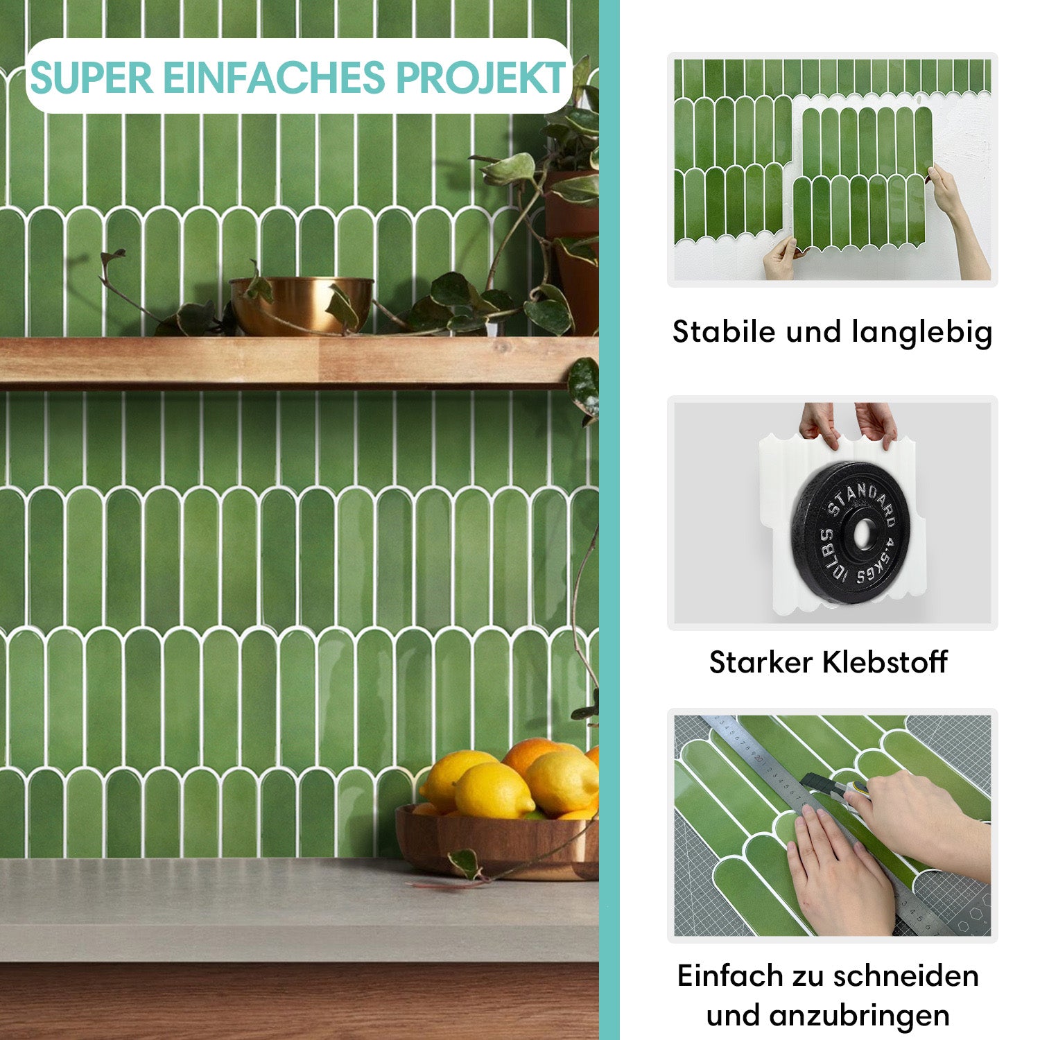 Selbstklebende Wandfliesen in Grün – Fischschuppenmuster und Extra Dick