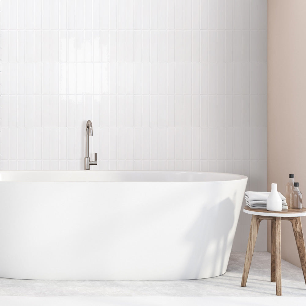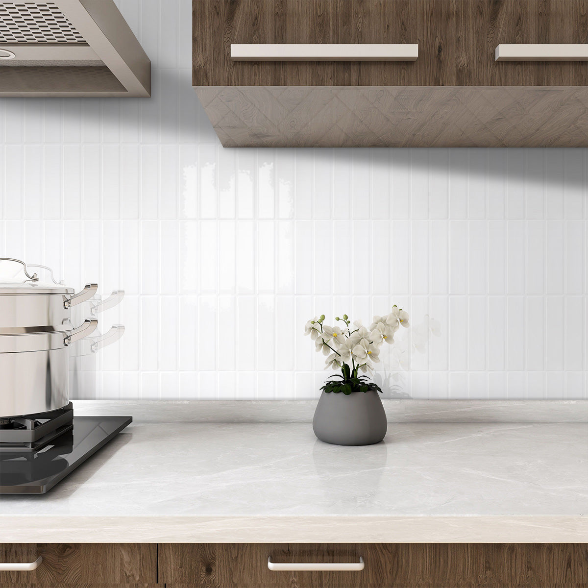 Selbstklebende Wandfliesen in Weiß – Lineares Design für Küchenrückwände